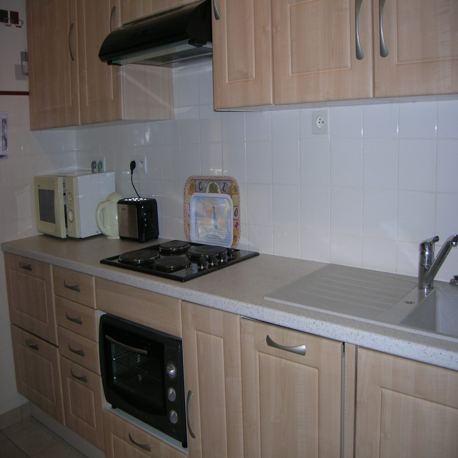 Il comprend : - une entrée-Une cuisine équipée avec éléments hauts et bas de rangement, mini four électrique, four micro-ondes, frigidaire-congélateur et plaques électriques, une table et deux chaises et un balcon donnant sur l'arrière de la résidence.-Un séjour avec une table et six chaises, un BZ, une télévision couleur écran plat, deux fauteuils et une table de travail. -Une chambre avec une literie en 140 cm, deux tables de chevet, un placard avec portes coulissantes.-une salle d'eau avec cabine de douche, meuble vasque lavabo et lave-linge. -Un wc séparé.