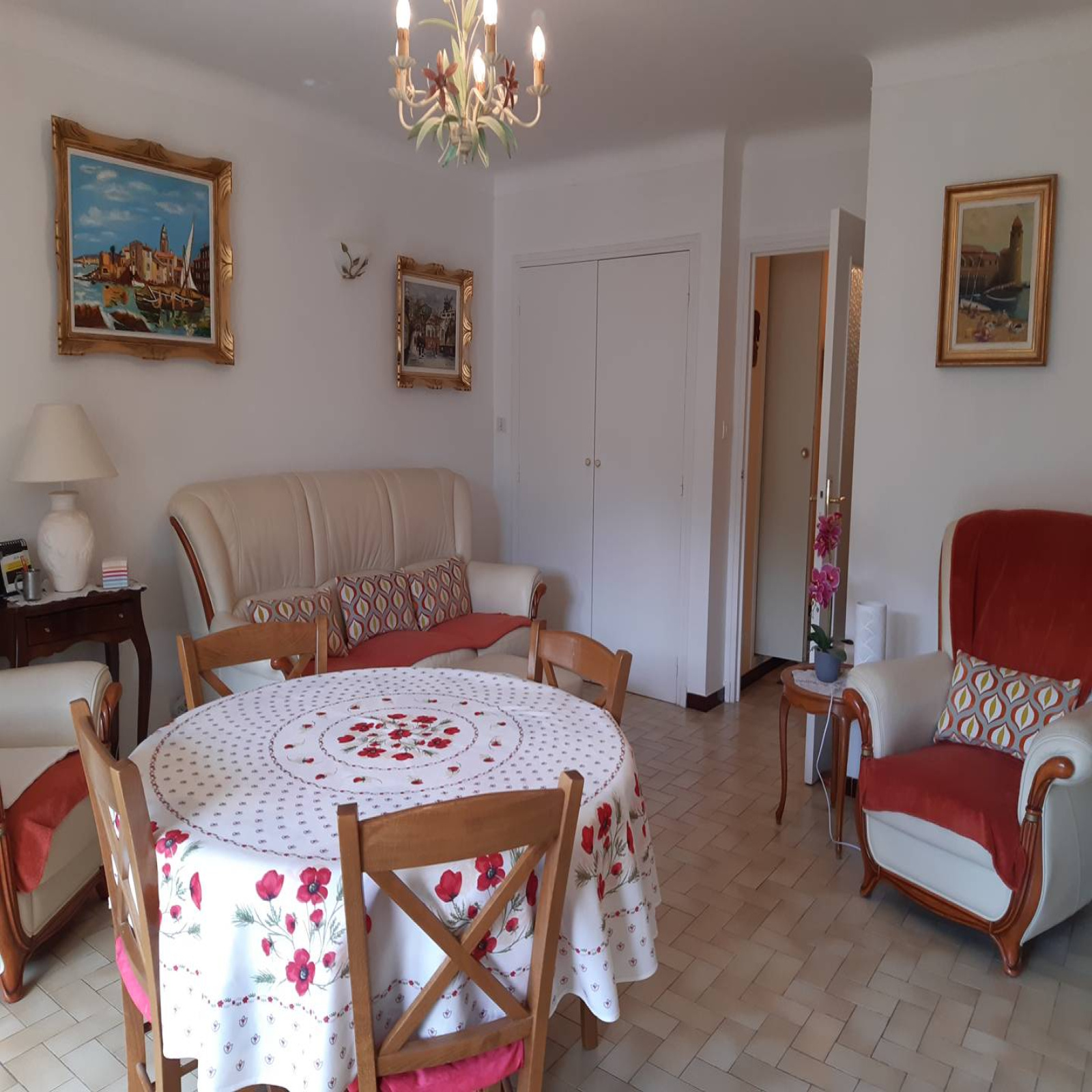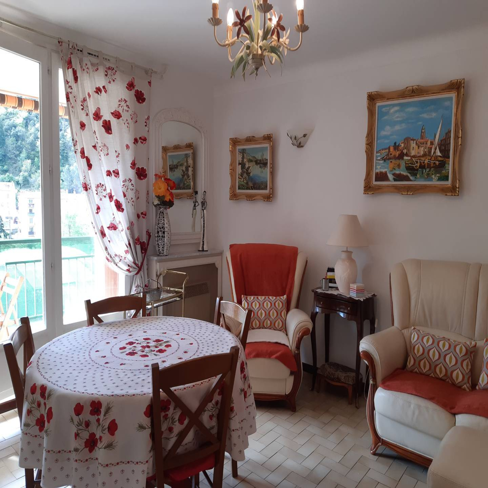 Revêtement carrelage au sol.cumulus et convecteurs électriques, relevé EDF toute l'année. Taxe de séjour comprise. Garage privé compris avec la location au 36 rue de la Rivièra.Location de draps à la demande : 11 euros/paire.