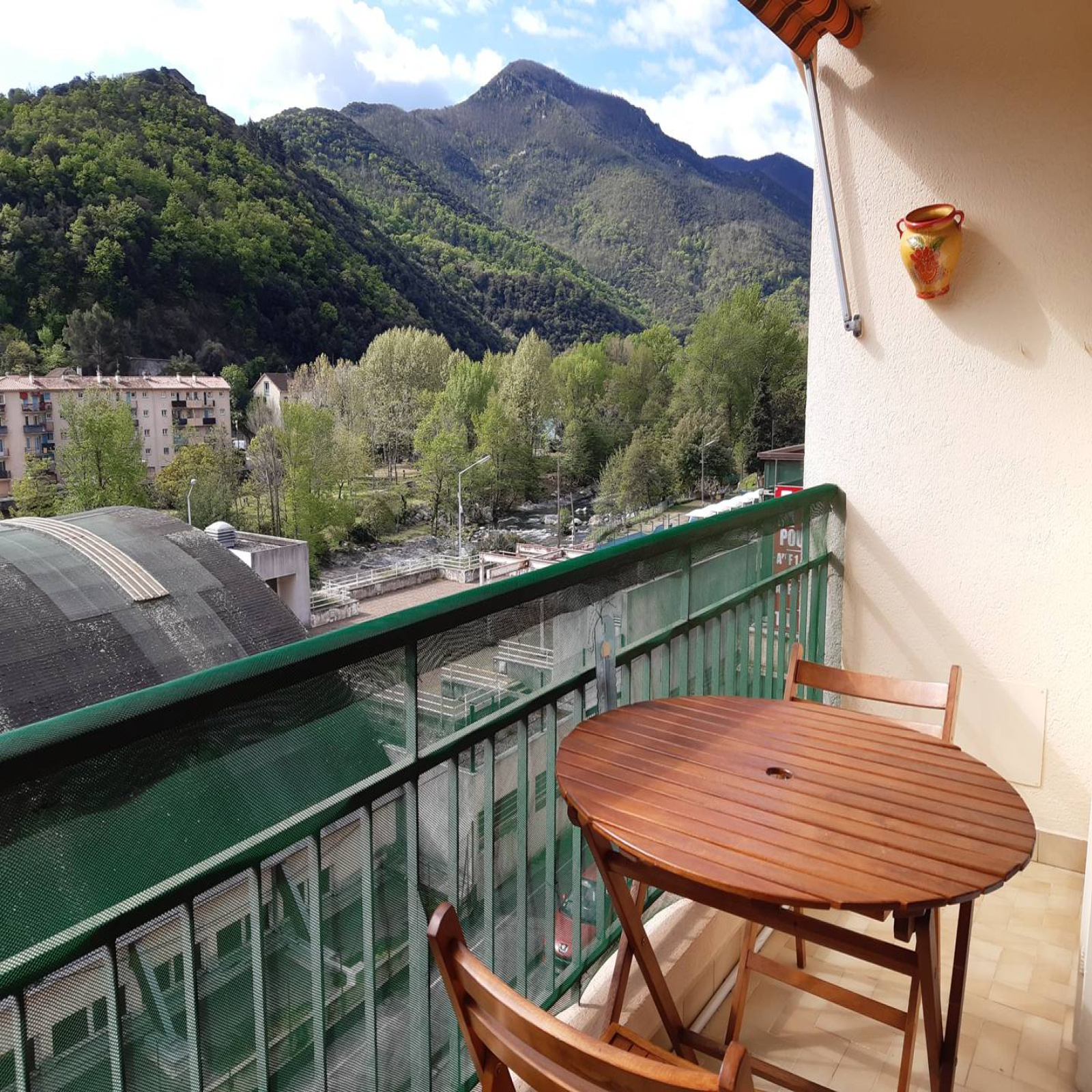 Très bel F2 d’environ 51 m², d’exposition Sud avec balcon loggia. Il se situe à côté de la place du grand marché du jeudi matin, au 3ème étage avec ascenseur. A environ 800 mètres du centre ville et de l’Etablissement Thermal, il comprend :