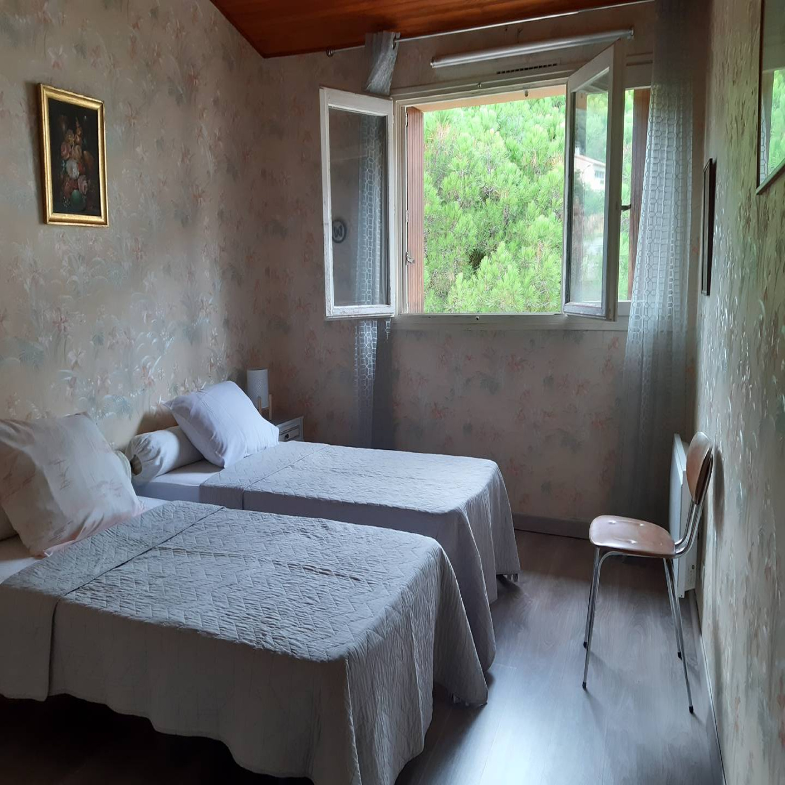 -Une chambre avec placard penderie et deux literies en 90 cm,