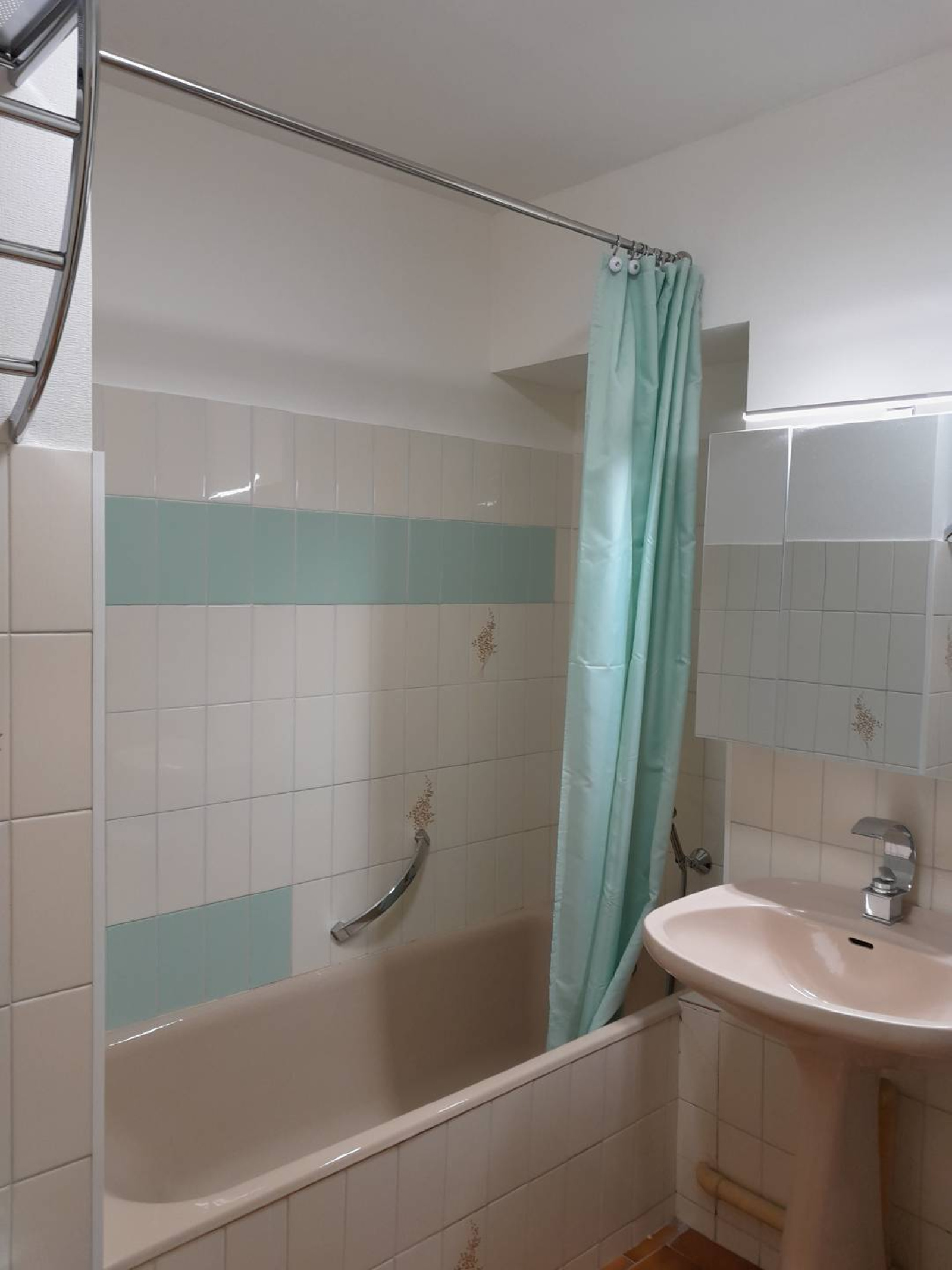 .Une salle de douche, un lavabo, une machine à laver. W.C.