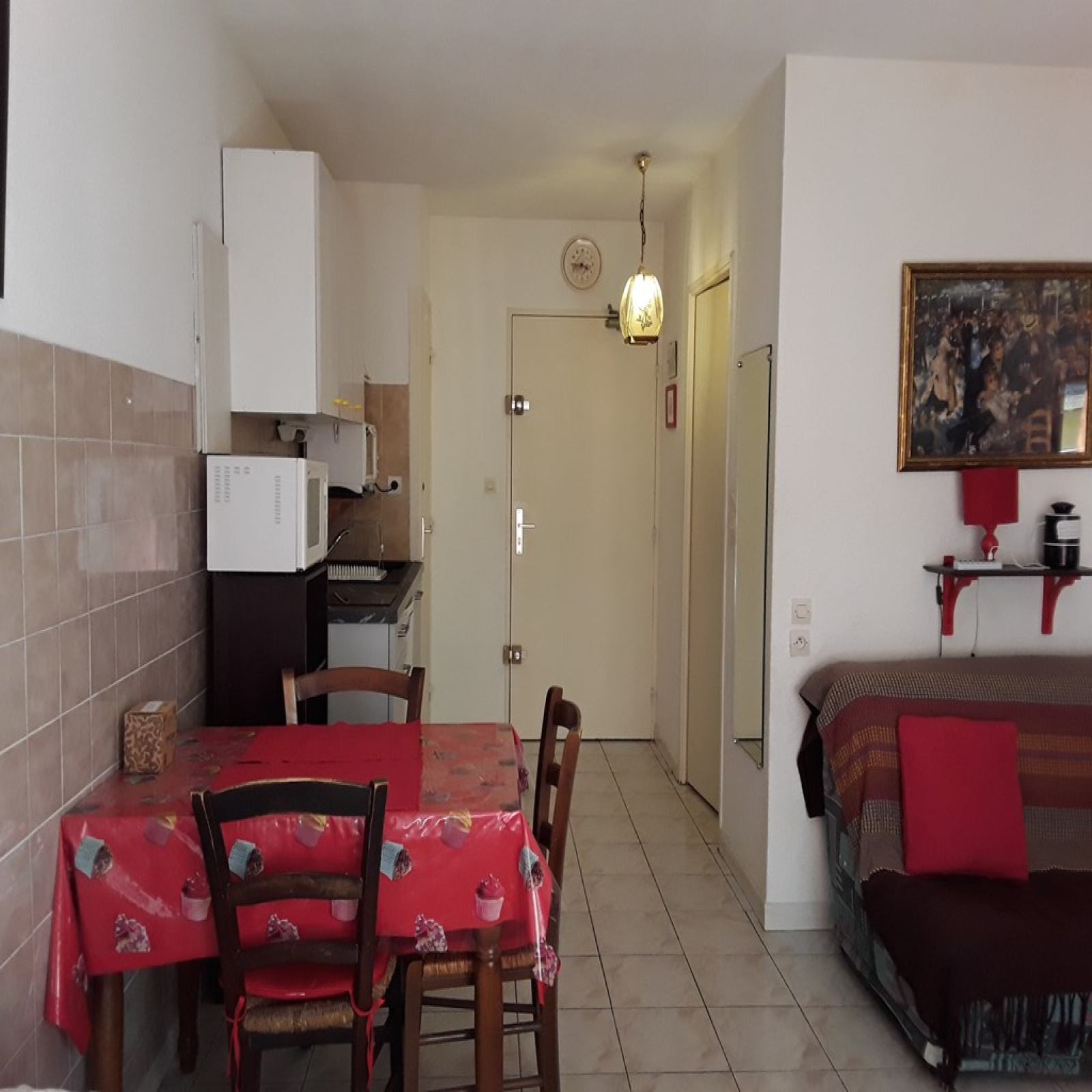 Joli studio d'environ 22 m2, situé au 1er étage avec ascenseur, donnant côté Ouest et à proximité de l'établissement thermal et du centre ville.