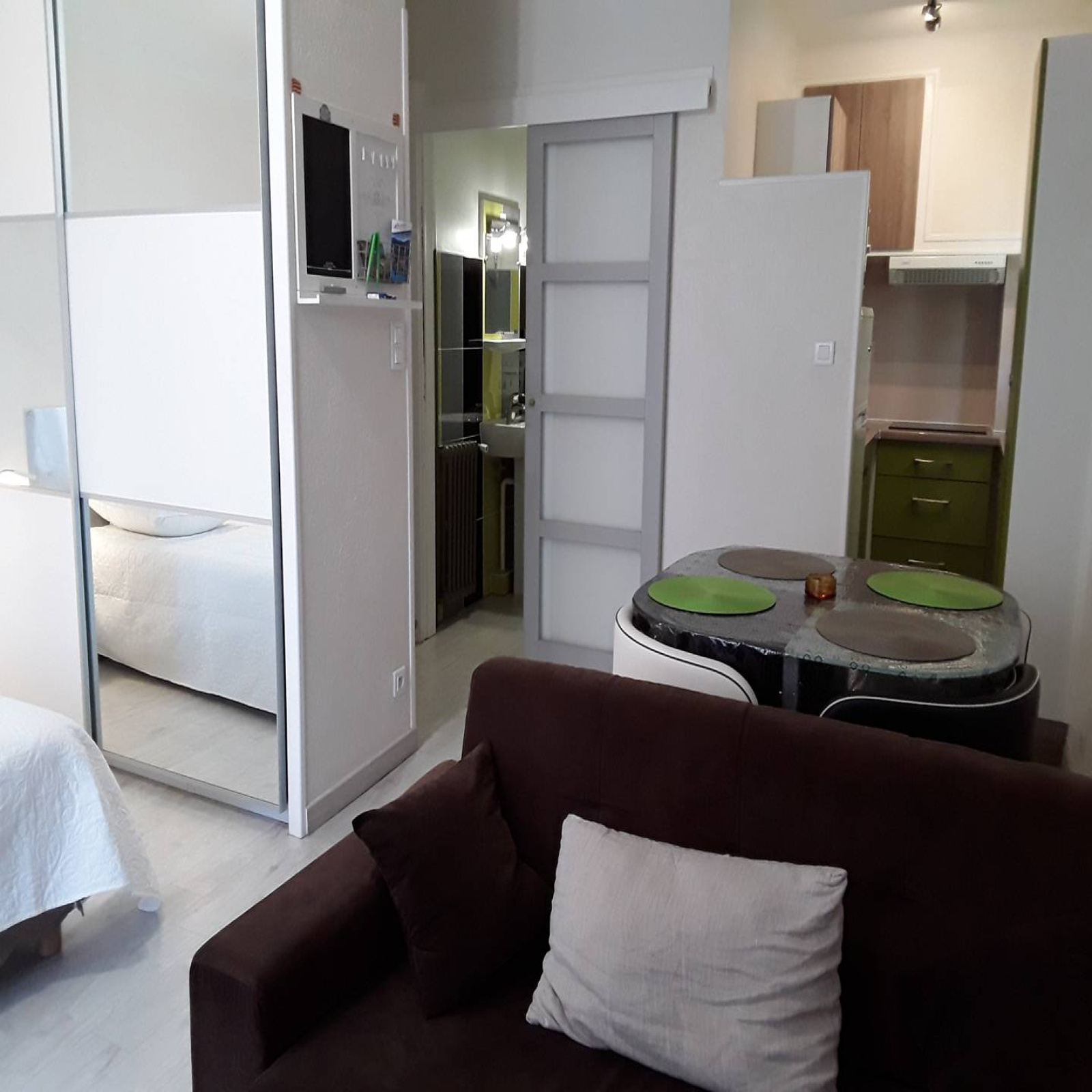 Joli studio classé 2** (décision du 09/12/2021), d’environ 25 m², situé au 1°étage d'une petite résidence, orienté Nord - Ouest, à proximité du centre ville et à environ 500 m de l'établissement Thermal, il est équipé Wifi avec une clef 4G de poche SFR. Il comprend :