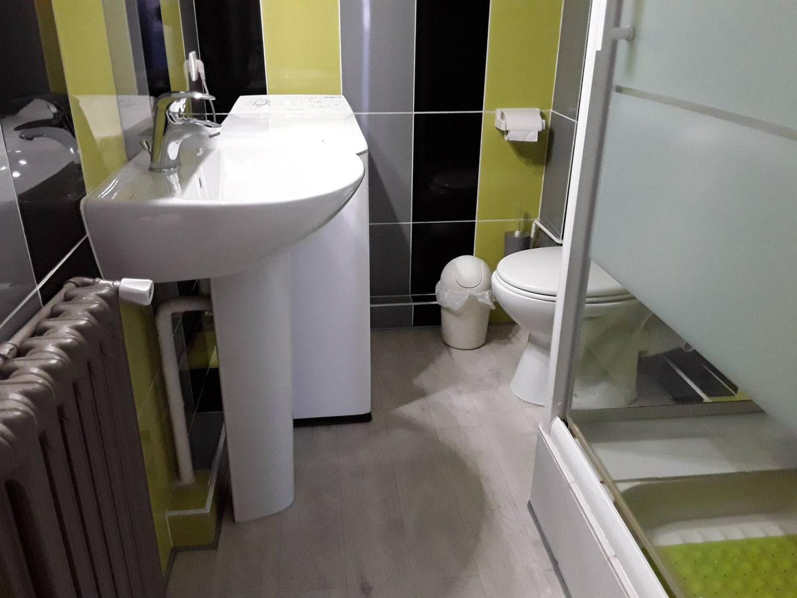 - une salle de douche, avec cabine de douche, lavabo, lave linge et wc.