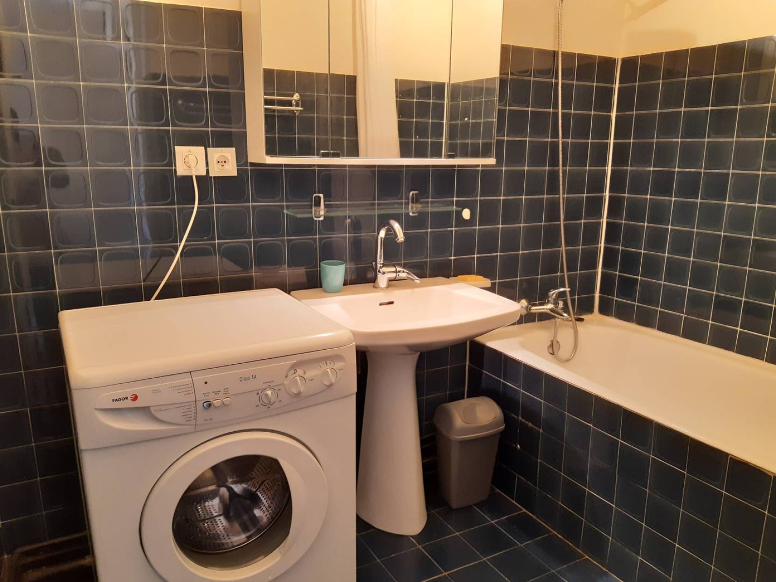 -Salle de bain avec une baignoire, un lavabo et une machine à laver. wc séparé.