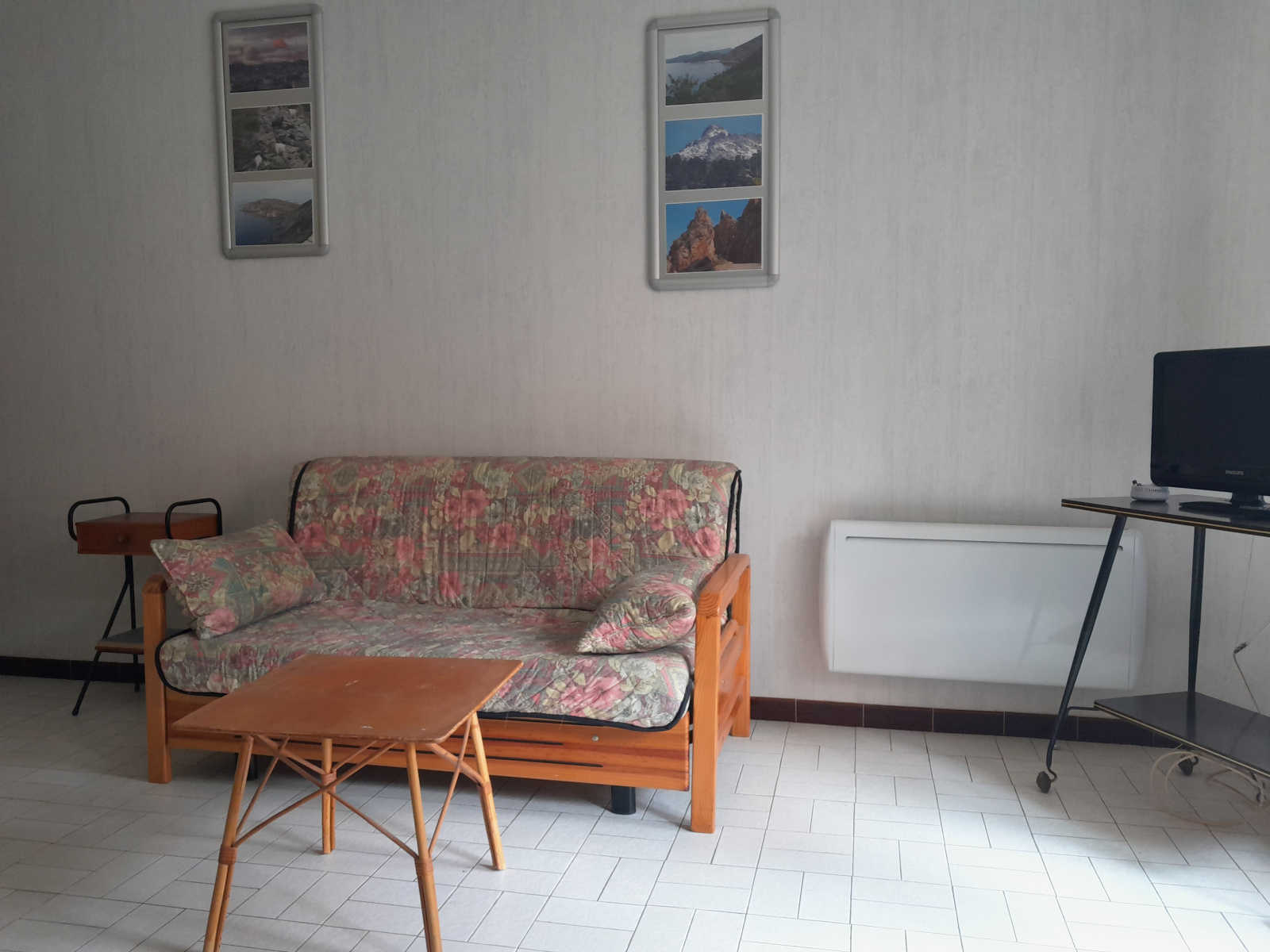 Entrée, salle d'eau/wc, pièce de vie avec espace nuit et coin cuisine, grands placards.