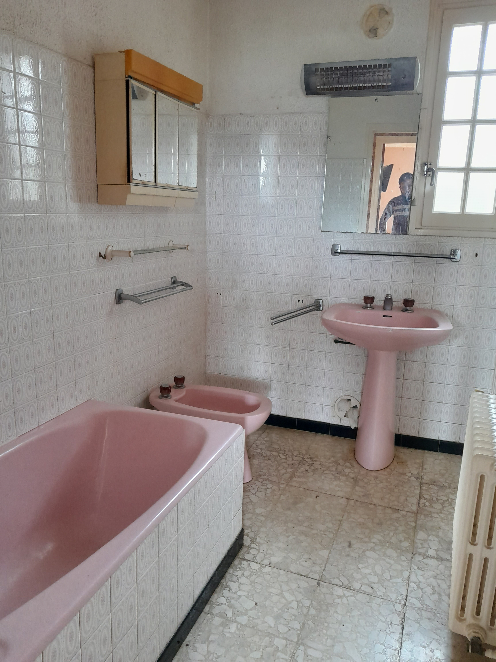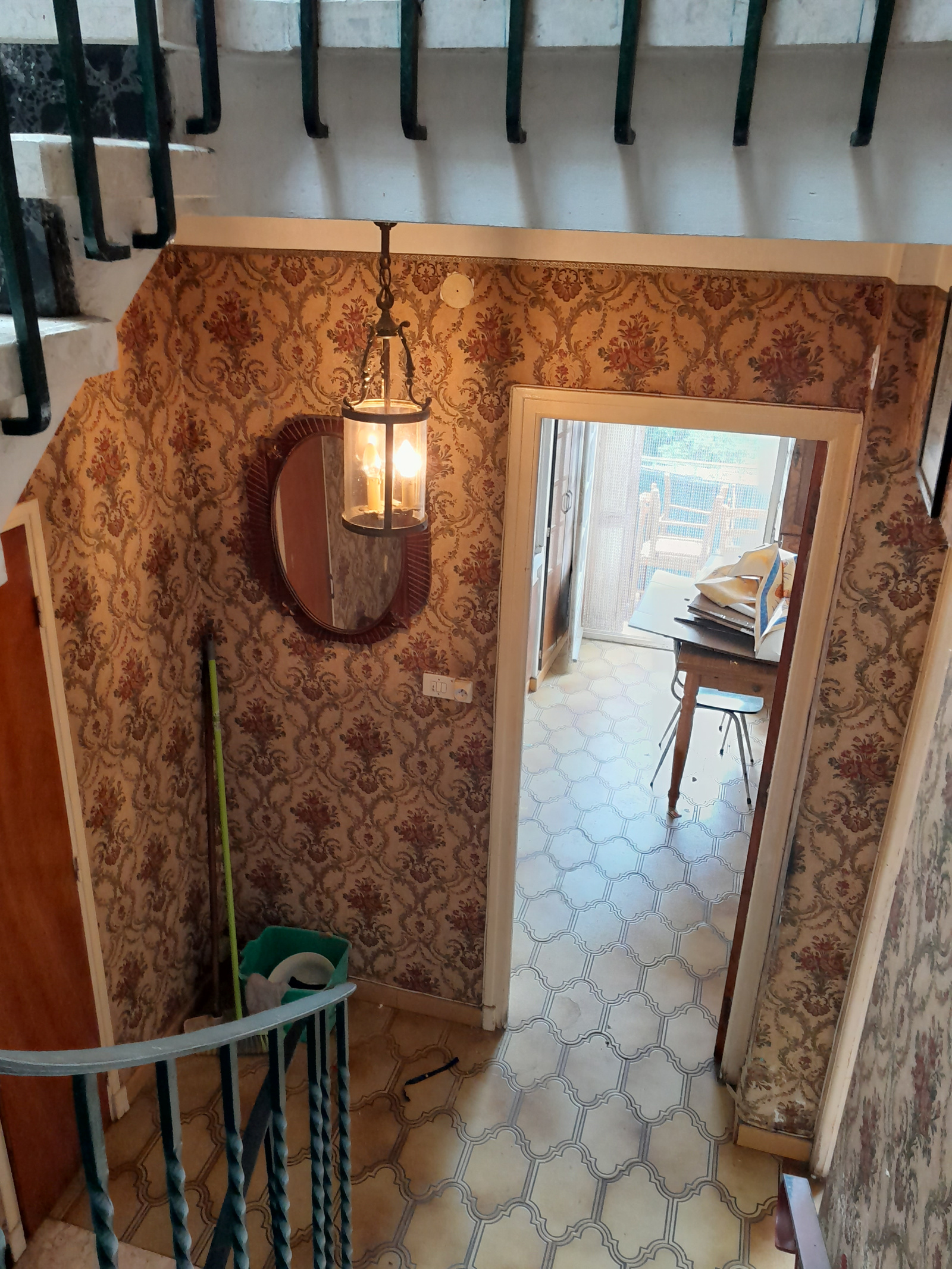 Composée d'un rez-de-chaussée avec grand garage, un 1er étage avec cuisine et séjour ouvrant sur terrasse, un wc; le deuxième étage se compose de deux chambres, un bureau, une salle de bain, un wc. Travaux de rafraichissement à prévoir.