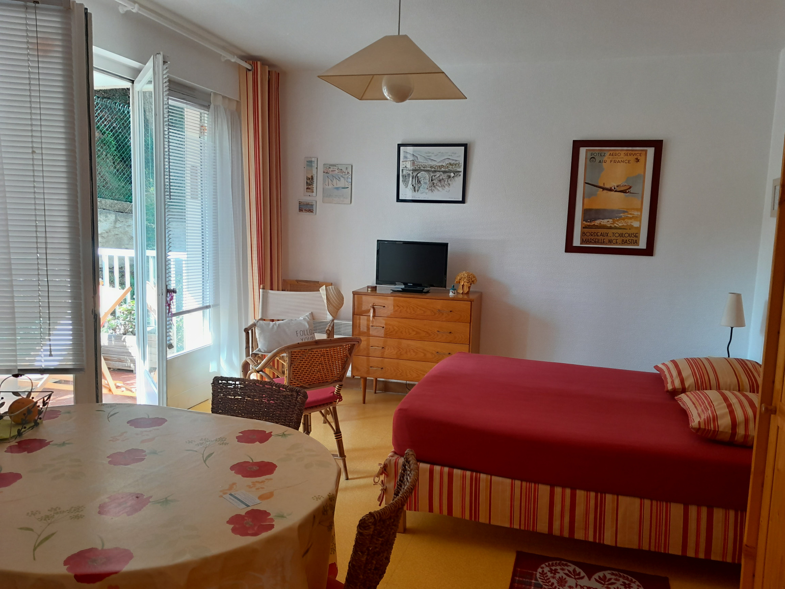 Lumineux studio d'environ 28m², composé d'une salle de bain avec fenêtre, d'un espace cuisine et d'une pièce de vie avec coin nuit, le tout ouvrant sur belle terrasse avec vue dégagée.